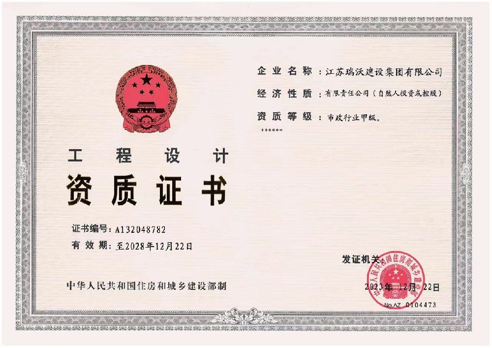 江蘇瑞沃建設(shè)集團(tuán)有限公司成立于2007年,是一家以市政、交通工程建設(shè)為主導(dǎo),集房屋建筑、交通安全設(shè)施、城市道路照明工程、電力工程、隧道工程、航道工程及投融資為一體的綜合性企業(yè)。企業(yè)注冊資本60000萬元,現(xiàn)有各類技術(shù)人員580人,其中中、高級以上人員498人,注冊類人員268人,一、二級建造師166人。公司榮獲“江蘇省建筑業(yè)優(yōu)秀企業(yè)”、“江蘇省五一勞動(dòng)獎(jiǎng)狀”,連續(xù)多年被評為“揚(yáng)州市先進(jìn)企業(yè)”、“江蘇省建筑業(yè)百強(qiáng)企業(yè)”,連續(xù)八年蟬聯(lián)百強(qiáng)企業(yè)基礎(chǔ)設(shè)施類第一名。